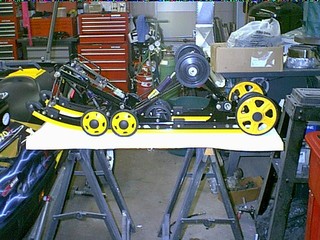This shows the pieces back. I used yellow accent pieces (like Madness). These included yellow idler wheels from a REV chassis (they are slightly larger in diameter) and the rear 8" wheels from Arctic Cat.