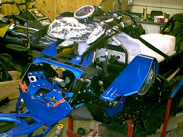 Tomorrow it is going to be putting the front plastic on, the rear skid in the sled, the Snow Eliminators riveted in place, the Van Amburg edges bolted in place the rear bumper and rack put in place.
